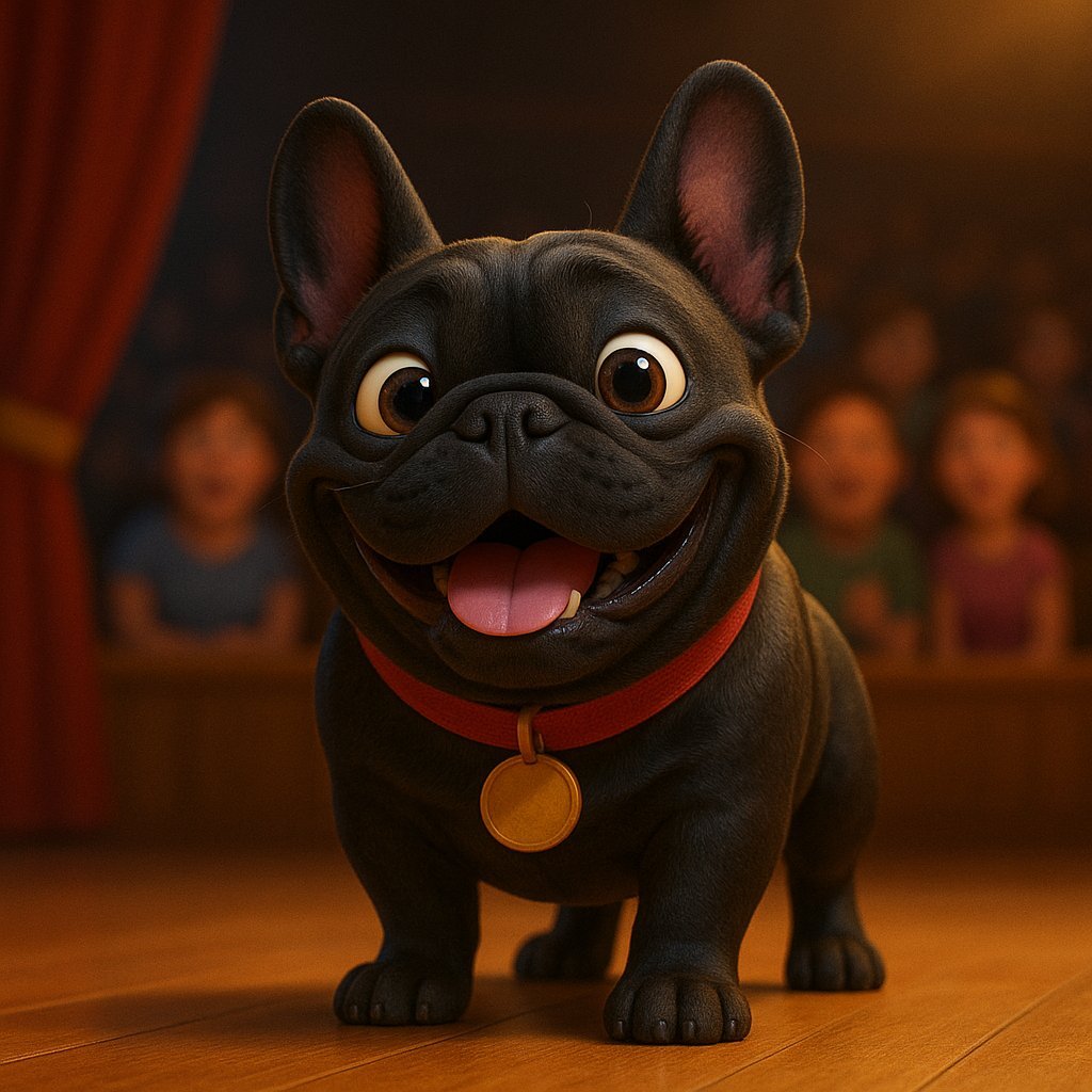 Volt egyszer egy kisvárosban egy még kisebb kutya: egy fekete francia bulldog, akit Fügének hívtak. Füge nem volt gyors, nem volt magas, és egy kicsit fura hangokat adott ki, amikor aludt – olyanokat, mint a kis traktorkák, amikor álmodnak.