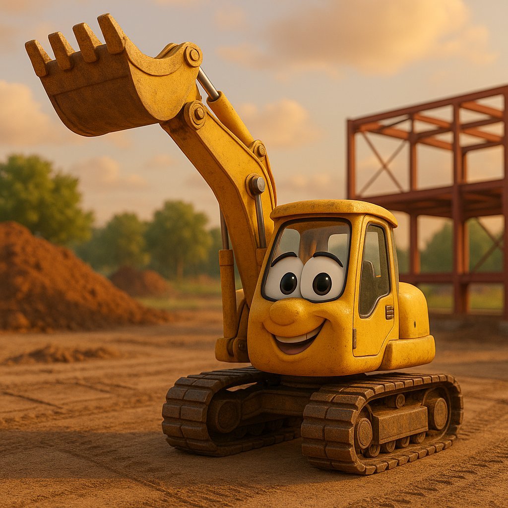 Egy nagy építkezés szélén élt egy sárga, erős, de nagyon kedves markológép, akit Misinek hívtak. Misi nem volt a leggyorsabb, és néha kicsit csálén állt az egyik lánctalpán, de mindig készen állt, ha segíteni kellett.