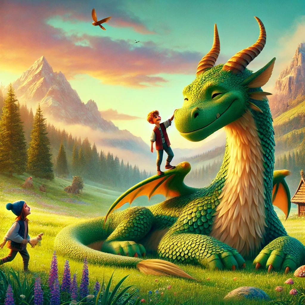 Ignác mosolyogva figyelte, ahogy a gyerekek boldogan futnak hazafelé. És amikor a falusiak meghallották a történetet, rájöttek, hogy nem kell félniük a hegy őrzőjétől. Attól a naptól kezdve Ignác már nem volt magányos: a gyerekek gyakran látogatták, hogy játszanak vele, és mindenki tudta, hogy a barátságos sárkány mindig vigyáz rájuk.
