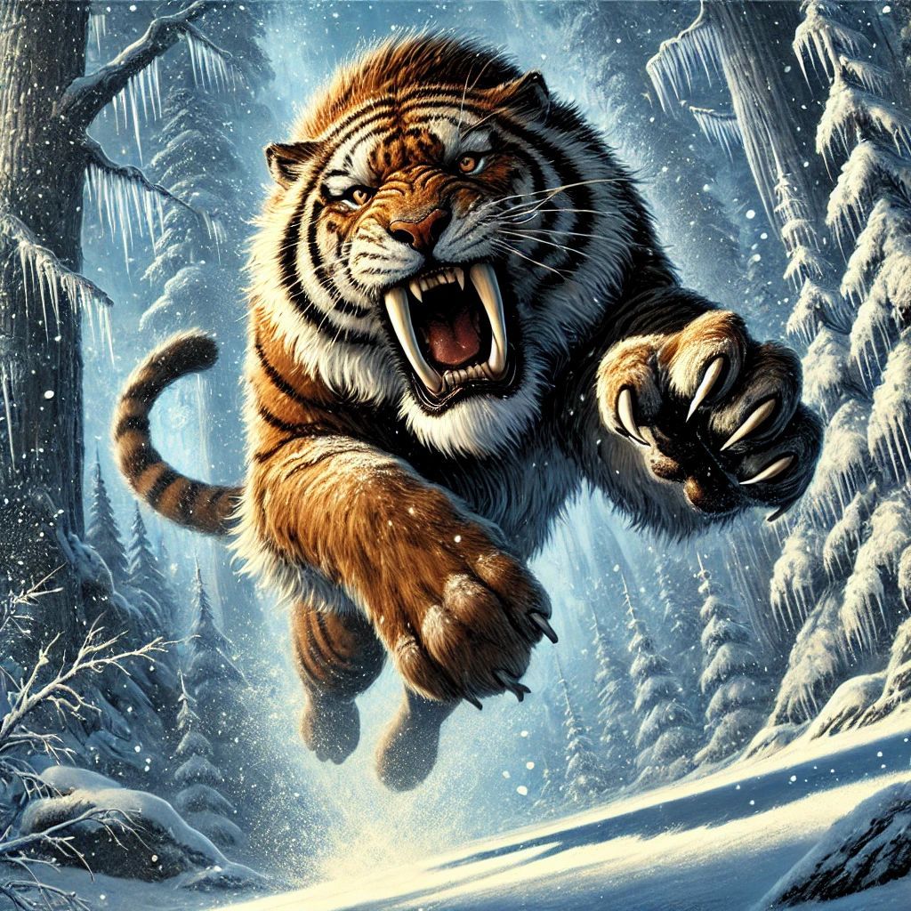 Réges-régen, amikor a világot még hatalmas jégmezők és sűrű, ködös erdők borították, élt egy különleges kardfogú tigris, akit Szélfoga néven ismertek. Nemcsak a hatalmas, éles fogai tették híressé, hanem bátorsága és gyorsasága is. Ő volt az Őszi Völgy őrzője, ahol a nap mindig aranyfényben ragyogott.