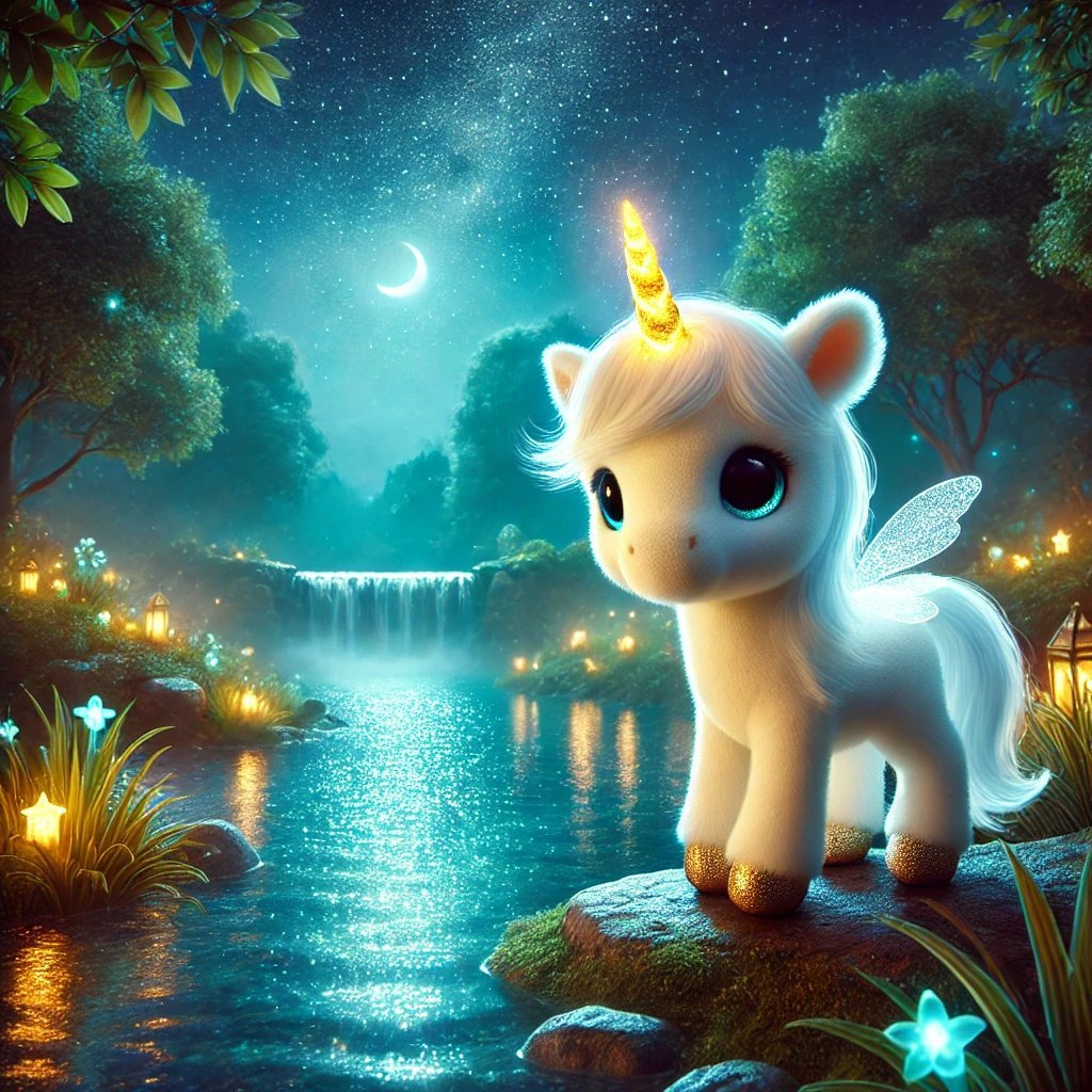 Messze, az erdők és hegyek közötti elrejtett völgyben élt egy kis unikornis, akit Lunának hívtak. Luna fehér bundája a holdfényben ragyogott, és a homlokán lévő aranyszarv finoman csillogott. Bár ő volt a legfiatalabb a völgy unikornisai között, Luna nagyon kíváncsi és bátor volt.