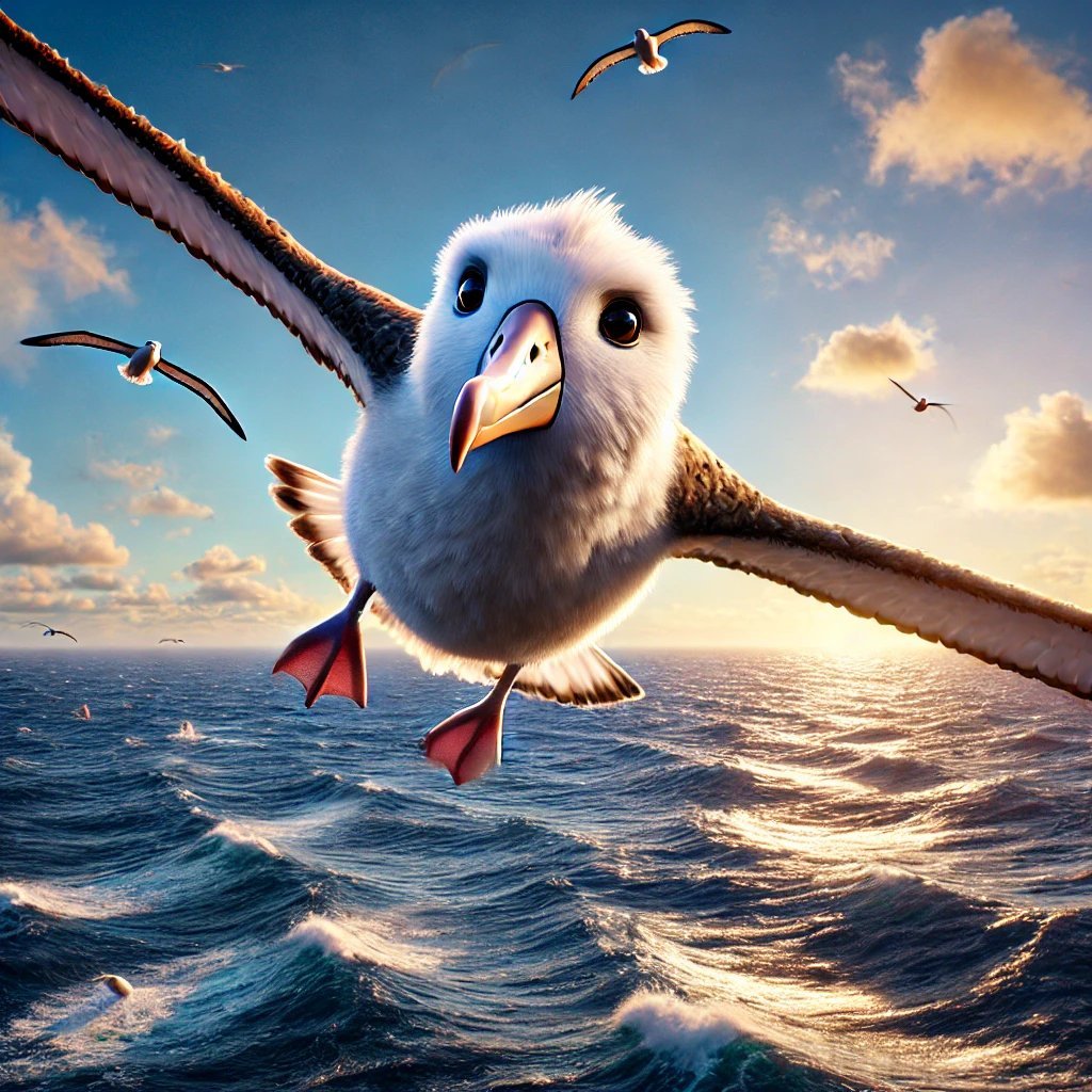 A végtelen óceán fölött, ahol a hullámok lassan ringatták a vizet, egy sziklás szigeten élt egy kis albatroszfióka, Albi.