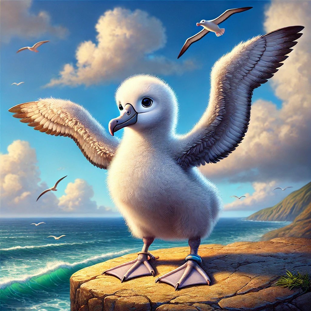 A végtelen óceán fölött, ahol a hullámok lassan ringatták a vizet, egy sziklás szigeten élt egy kis albatroszfióka, Albi.