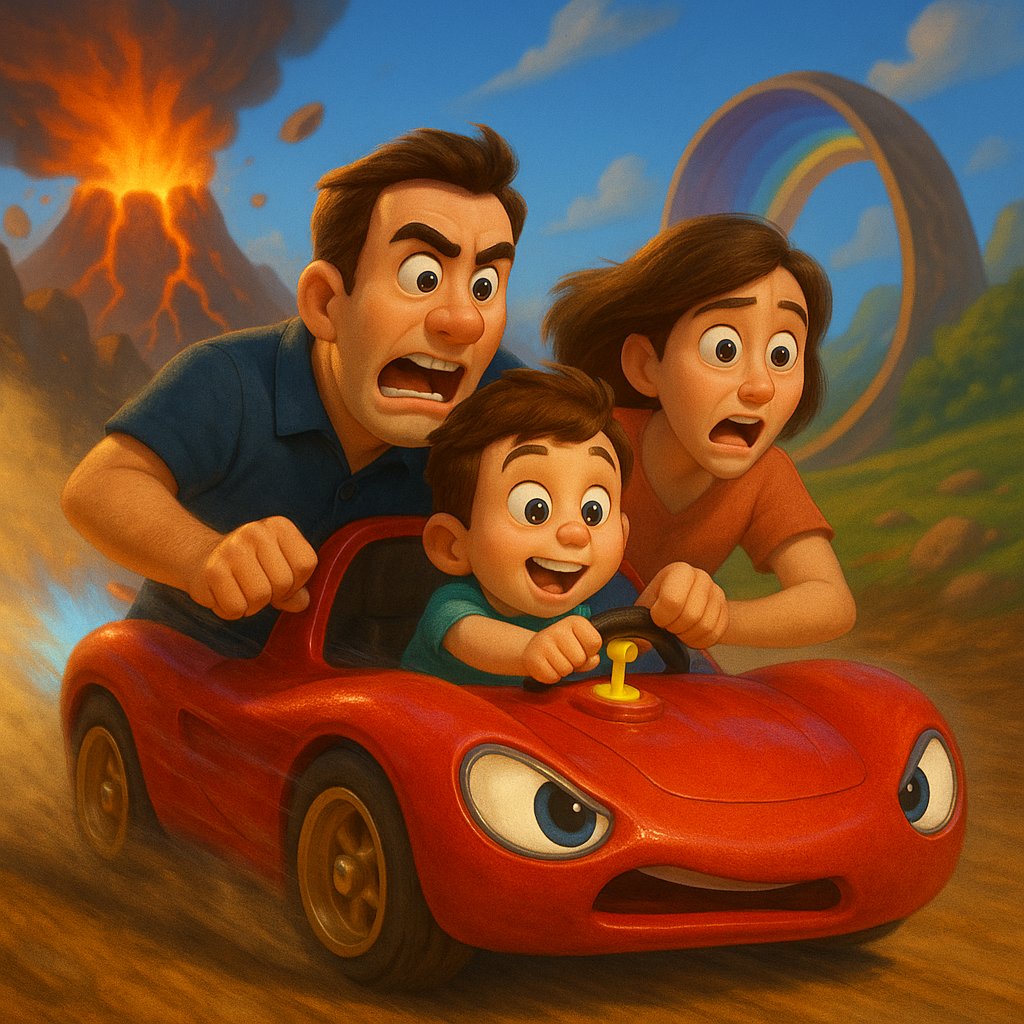 A motor felbőgött, a kerekek felsivítottak, és már száguldott is a család!