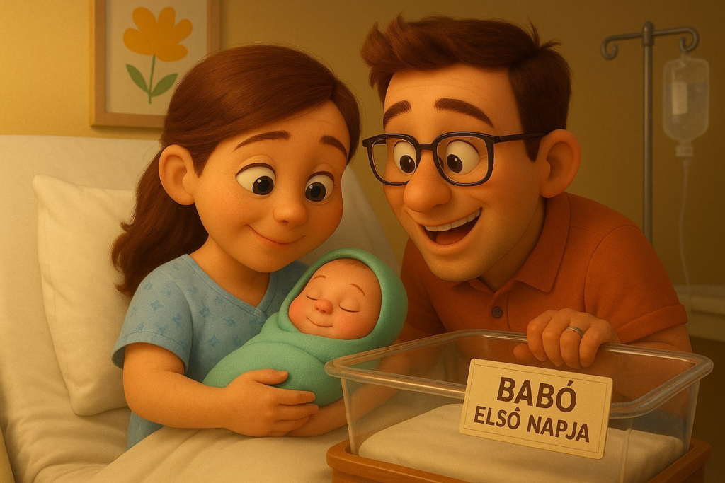 Apa végig ott volt Anya mellett. Fogta a kezét, bátorította, és néha együtt nevettek, néha csendben csak egymásra néztek. Együtt várták Babót. Az idő hol gyorsan, hol lassan telt, de végül eljött a pillanat.