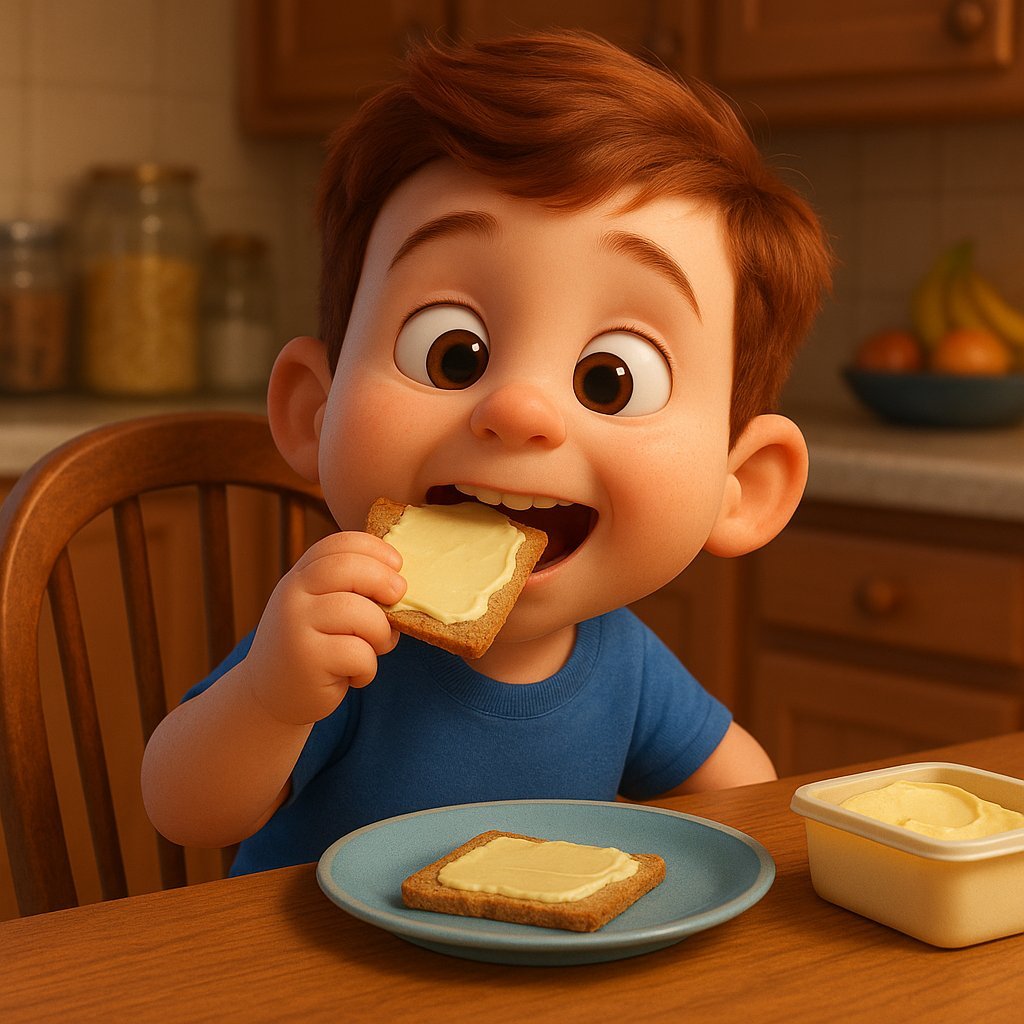 Egyszer volt, hol nem volt, volt egyszer egy kisfiú, akit Balázsnak hívtak. Balázs nagyon szerette a reggeleket, főleg akkor, amikor Anya vajas abonettet készített neki reggelire. A ropogós, könnyű kis szelet, a tetején sima vajjal – hát az volt a világ legjobb reggelije!