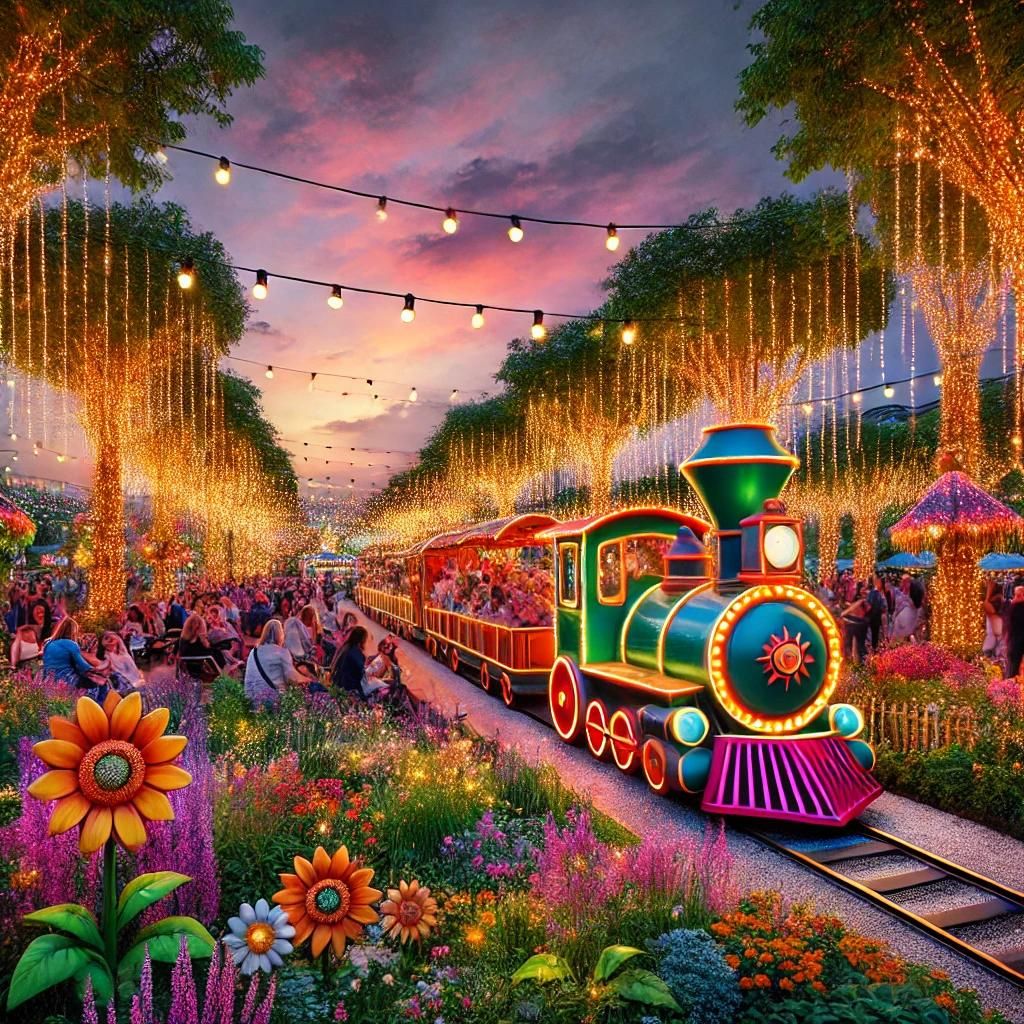 Az utasok és a Barátság Expressz az este hátralévő részét a Boldogság Kertjében töltötte. A gyerekek virágokat szedtek, a felnőttek pihentek, és a madarak dallamosan énekeltek. Amikor a nap lenyugodott, a kert fái apró fényeket kezdtek árasztani, mintha tündérek szálltak volna le közéjük.