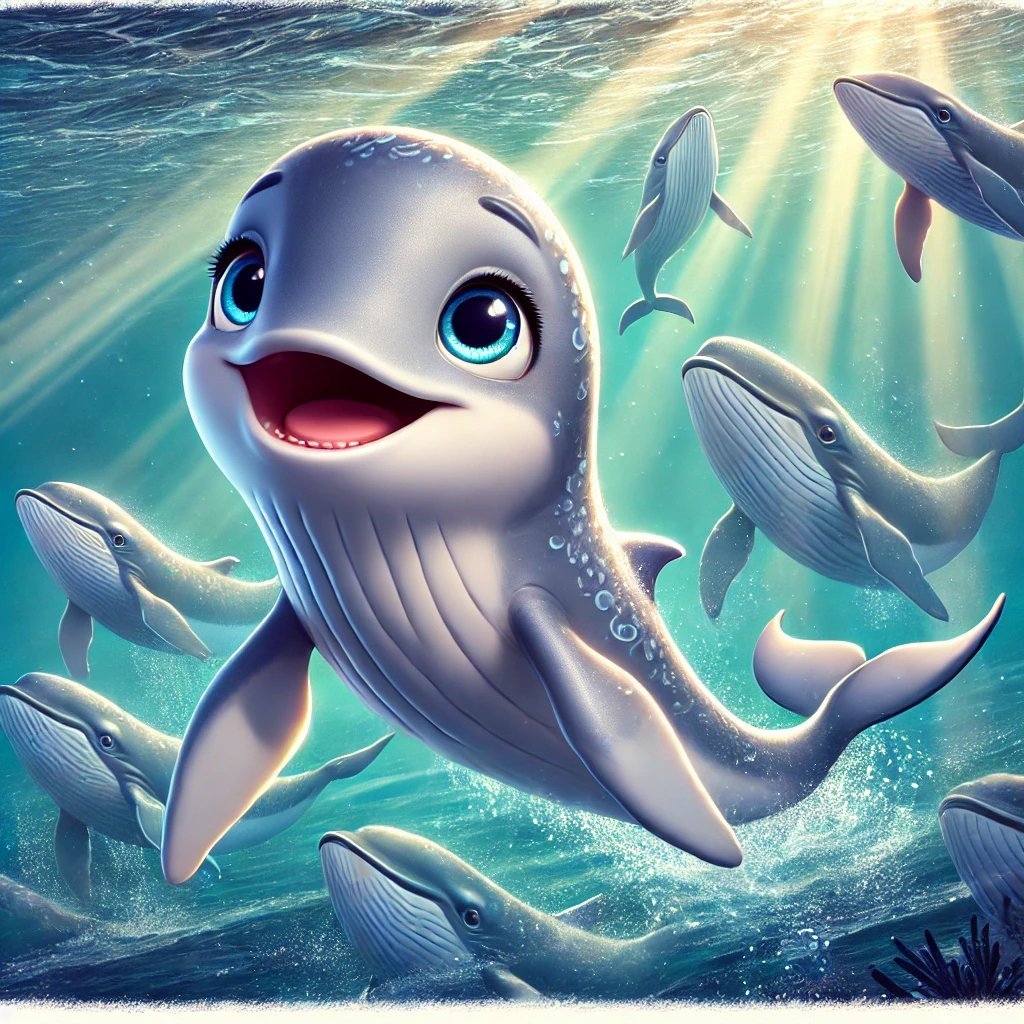 A végtelen óceán mélyén, ahol a víz sötétkéken ragyogott, és a hullámok csendesen ringatták a világot, élt egy fiatal bálna, Beni.