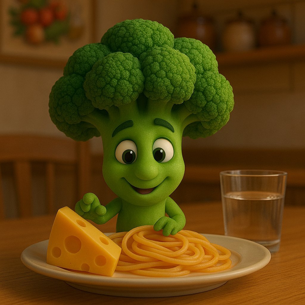 – Ő lesz a főszereplő! – mondta mosolyogva. – Egy finom, vajas brokkolis tészta készül!