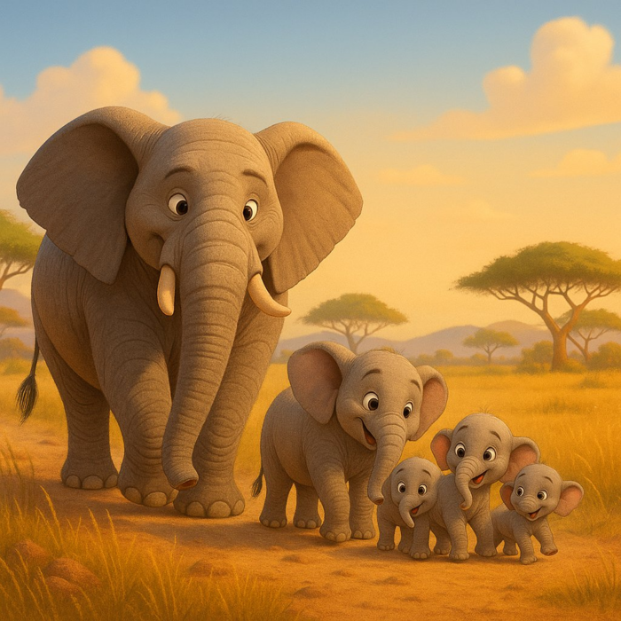 Valahol a meleg, napfényes szavannán, ahol az akáciák árnyéka hosszúra nyúlik a porban, élt egy kicsi, mégis különleges elefántcsalád. A család neve Lépés-csapat volt –