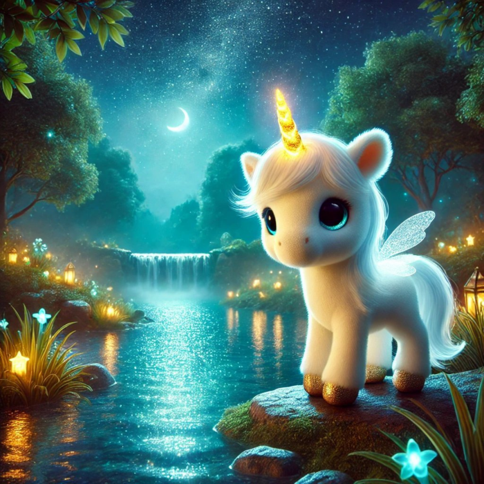 Messze, az erdők és hegyek közötti elrejtett völgyben élt egy kis unikornis, akit Lunának hívtak. Luna fehér bundája a holdfényben ragyogott, és a homlokán lévő