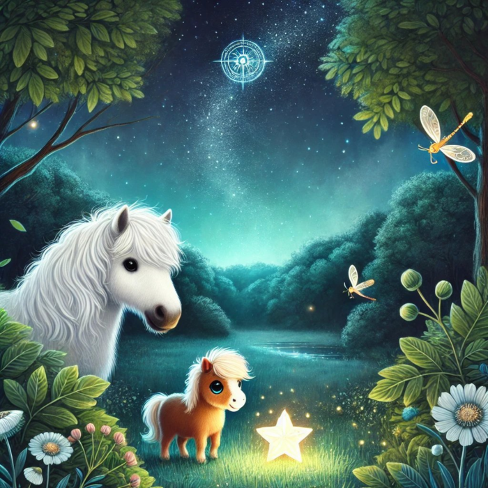 Egyszer volt, hol nem volt, élt egy gyönyörű fehér ló, akit Csillagfénynek hívtak. Csillagfény az erdő melletti zöld mezőkön élt, ahol napjai nagy részét futkározással
