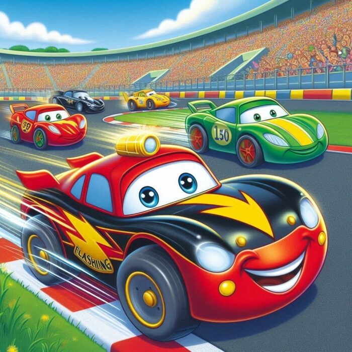Valahol messze, egy hosszú-hosszú pálya szélén, ahol a szél mindig versenyre hívta a port, élt egy versenyautó, akit úgy hívtak: Villogó. Nem csak a neve