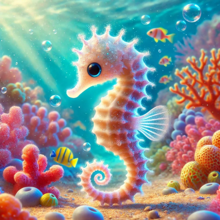A mély kék óceánban, ahol a hullámok lágyan ringatták a korallzátonyokat, és a napfény csillogva tört meg a víz felszínén, élt egy apró csikóhal, akit