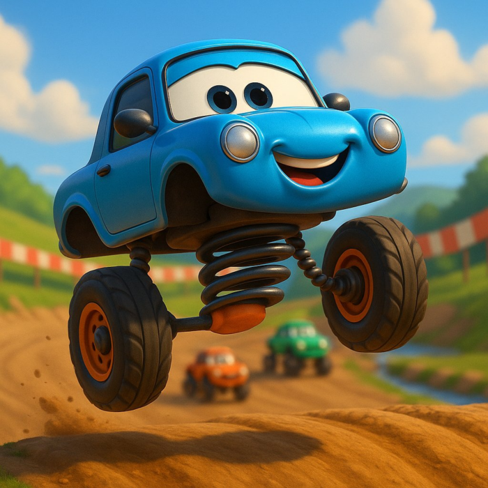 Egyszer, nem is olyan régen, egy különleges versenypályán zajlott a világ legfurcsább autóversenye: a Rugólábú Nagydíj! Itt nem a leggyorsabb autók nyertek, hanem azok, akik