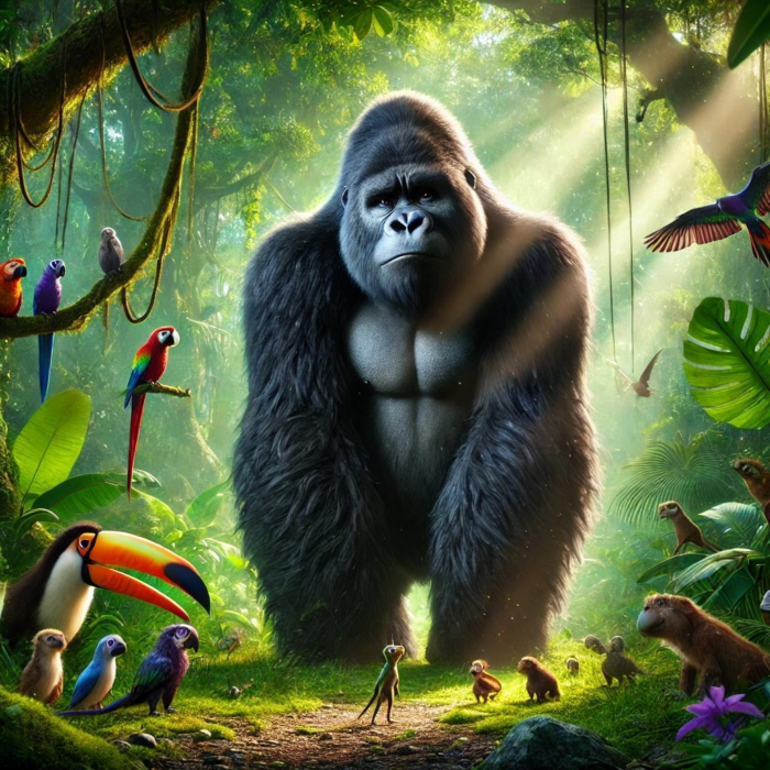A sűrű, smaragdzöld esőerdő mélyén, ahol a fák lombja az eget súrolta, és a madarak színes kavalkádja cikázott a levegőben, élt egy hatalmas, óriási gorilla