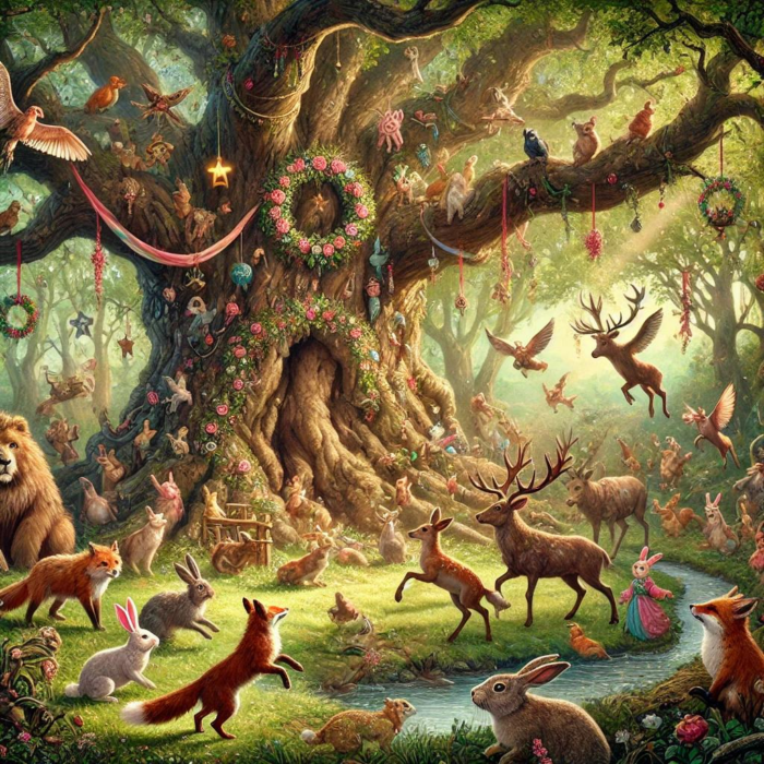 Egyszer volt, hol nem volt, egy csodás erdő, ahol minden állat békében és harmóniában élt egymás mellett. Az erdő szívében állt egy hatalmas, évszázados fa,