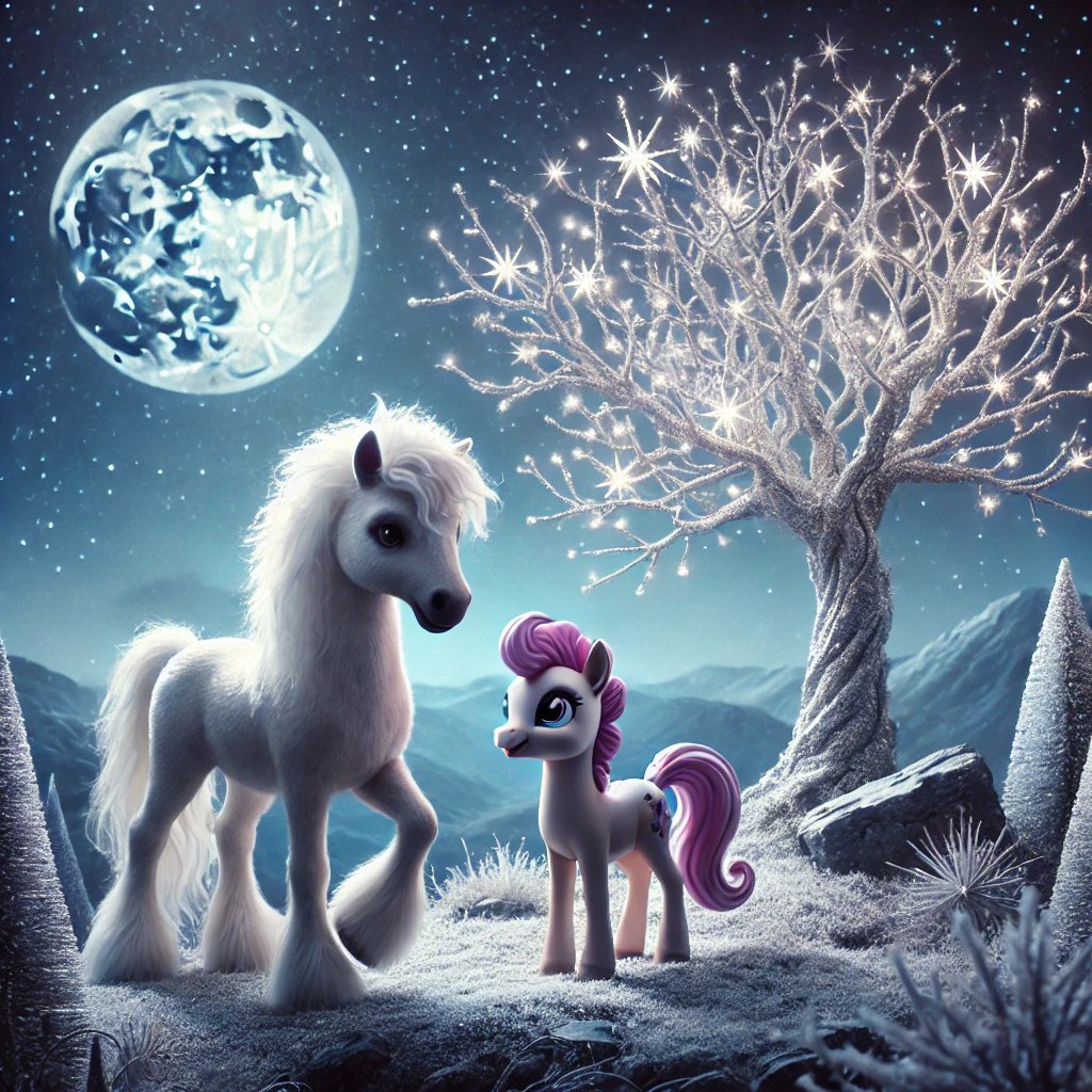 Egyszer volt, hol nem volt, élt egy gyönyörű fehér ló, akit Csillagfénynek hívtak. Csillagfény az erdő melletti zöld mezőkön élt, ahol napjai nagy részét futkározással és legelészéssel töltötte. De nem volt egyedül: a legjobb barátja, egy vidám kis póni, Pötyi, mindig vele tartott.