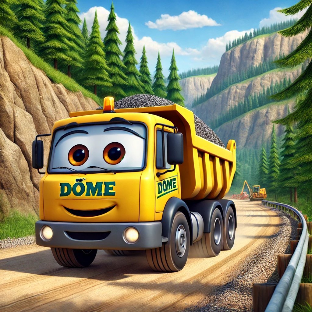 Döme izgatottan indult a bányához, hogy felvegye az első szállítmányt. A hegyi út keskeny és kanyargós volt, de Döme ügyesen kormányzott. Ahogy az egyik szerpentinhez ért, észrevette, hogy az egyik markológép furcsán áll a domb tetején.