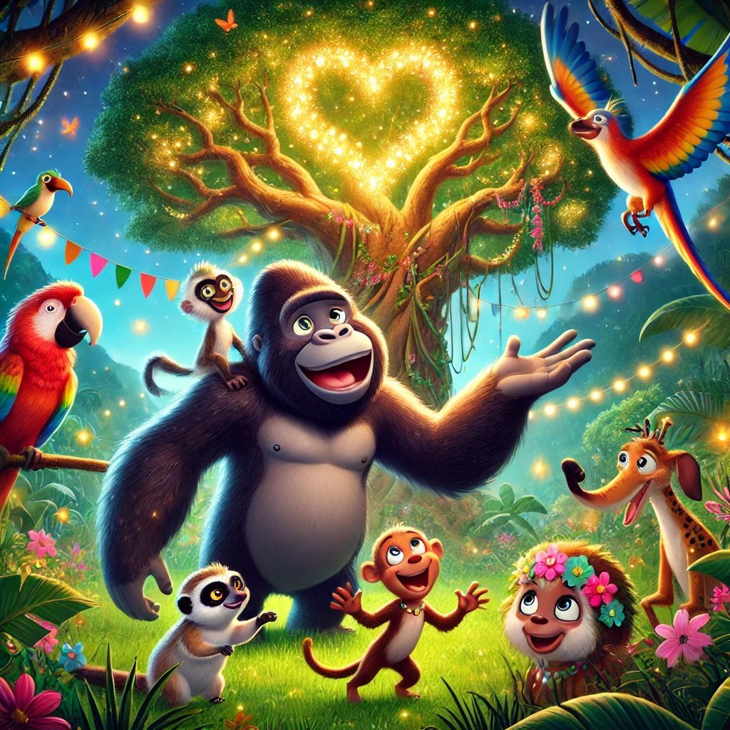 Egyszer volt, hol nem volt, a sűrű, zöldellő dzsungelben élt egy kedves gorilla, akit Gombócnak hívtak. Gombóc különleges gorilla volt: mindig mosolygott, és mindenkihez volt egy kedves szava. A dzsungelben mindenki ismerte és szerette őt, mert mindig segített másoknak, legyen szó banánszedésről vagy csak egy barátságos ölelésről.