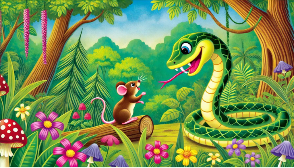 Egyszer volt, hol nem volt, egy sűrű, zöld dzsungelben élt egy kíváncsi és barátságos kígyó, akit Kittinek hívtak. Kitti egy hosszú, karcsú kígyó volt, akinek gyönyörű zöld pikkelyei úgy csillogtak a napfényben, mint az esőcseppek a leveleken. Bár sok állat tartott tőle, ő nem volt gonosz vagy veszélyes. Inkább felfedezni szerette a világot és segíteni másokon.