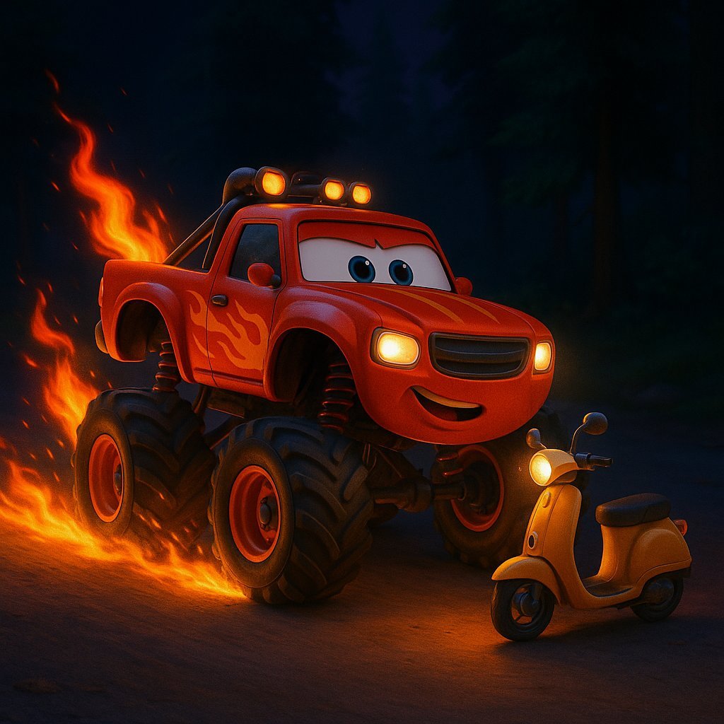 Egyszer volt, hol nem volt, egy messzi-motoros völgy mélyén élt egy különleges autó, akit Lángtüzesnek hívtak. Nem akármilyen járgány volt ő! A kerekei fémből készültek, de ha izgatott lett vagy segíteni akart, piros-narancs lángok csaptak fel a kipufogójából, és tüzes csíkot hagyott maga után az aszfalton.