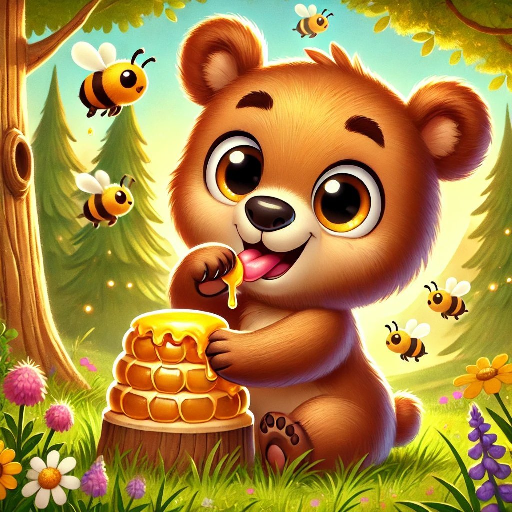 A hatalmas erdő mélyén, ahol az óriási fák árnyékot vetettek a zöld mohával borított talajra, élt egy vidám és kíváncsi kis medvebocs, Maci. Maci imádott játszani, fára mászni, gombát szimatolni, de legjobban egy dolgot szeretett: a mézet.