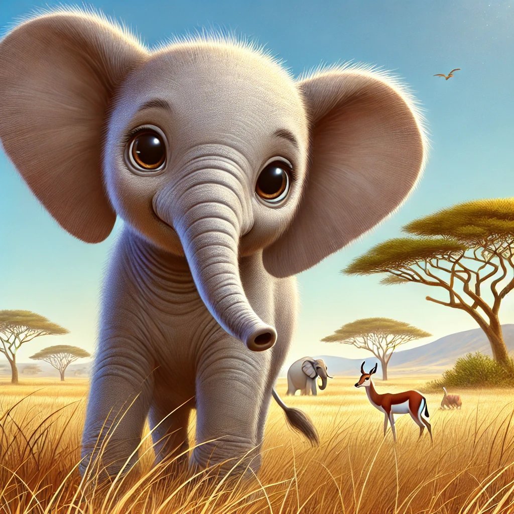 A forró afrikai szavanna aranyló fűtengerében élt egy kis elefánt, akit Nandának hívtak. Ő volt a csorda legfiatalabb tagja, kíváncsi és játékos, mindig új dolgokat akart felfedezni. A többi elefánt gyakran mosolygott rajta, mert Nanda soha nem tudott egy helyben maradni – mindig kérdezgetett, mindig új kalandokat keresett.