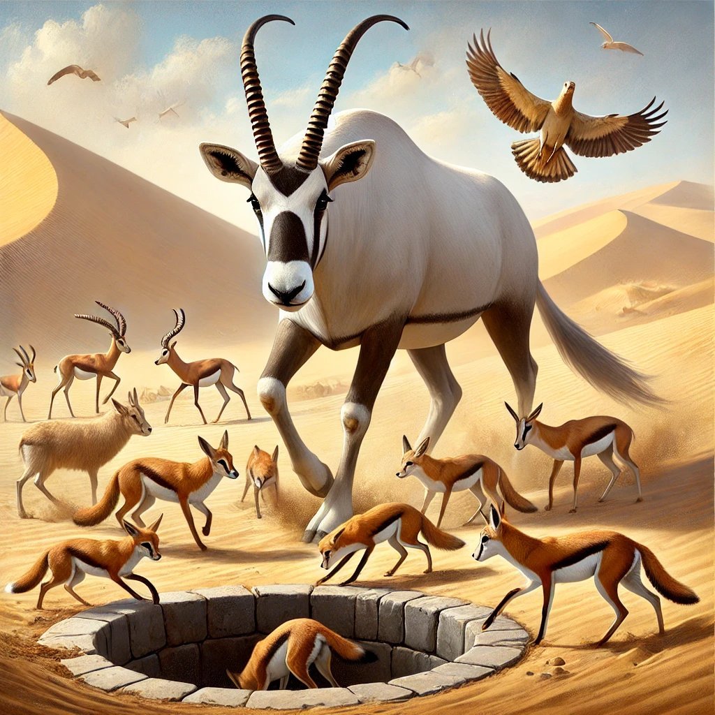 A sivatag állatai boldogan ittak a hűsítő vízből, és Nimr büszkén nézett körbe.