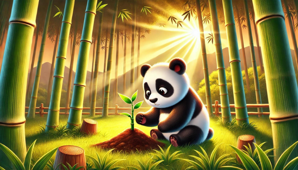 A hatalmas, zöldellő hegyek között, ahol a köd puhán ölelte át a fák lombjait, élt egy kíváncsi kis panda, akit Pankának hívtak. Panka nemcsak játékos volt, hanem nagyon szeretett kérdezni is. Mindent tudni akart az erdőről, ahol élt, különösen a kedvenc csemegéjéről: a bambuszról.