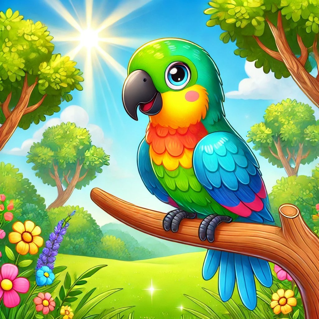 Pipi nemcsak szépséges zöld és kék tollairól volt híres, hanem arról is, hogy mindig vidáman csivitelte: „Jó reggelt!”, „Szép napot!” és „Szeretlek!” A család minden tagja imádta, különösen a kislány, Lilla, aki sokszor mesélt neki esti meséket.