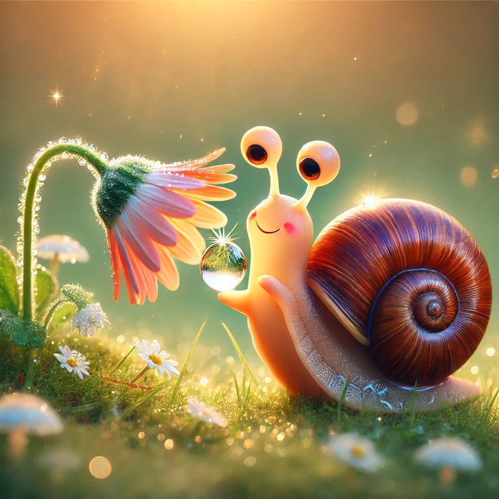A rét szélén, ahol a harmat gyöngyökként csillogott a fűszálakon, élt egy apró, sárgásbarna csiga, akit Pötyinek hívtak.