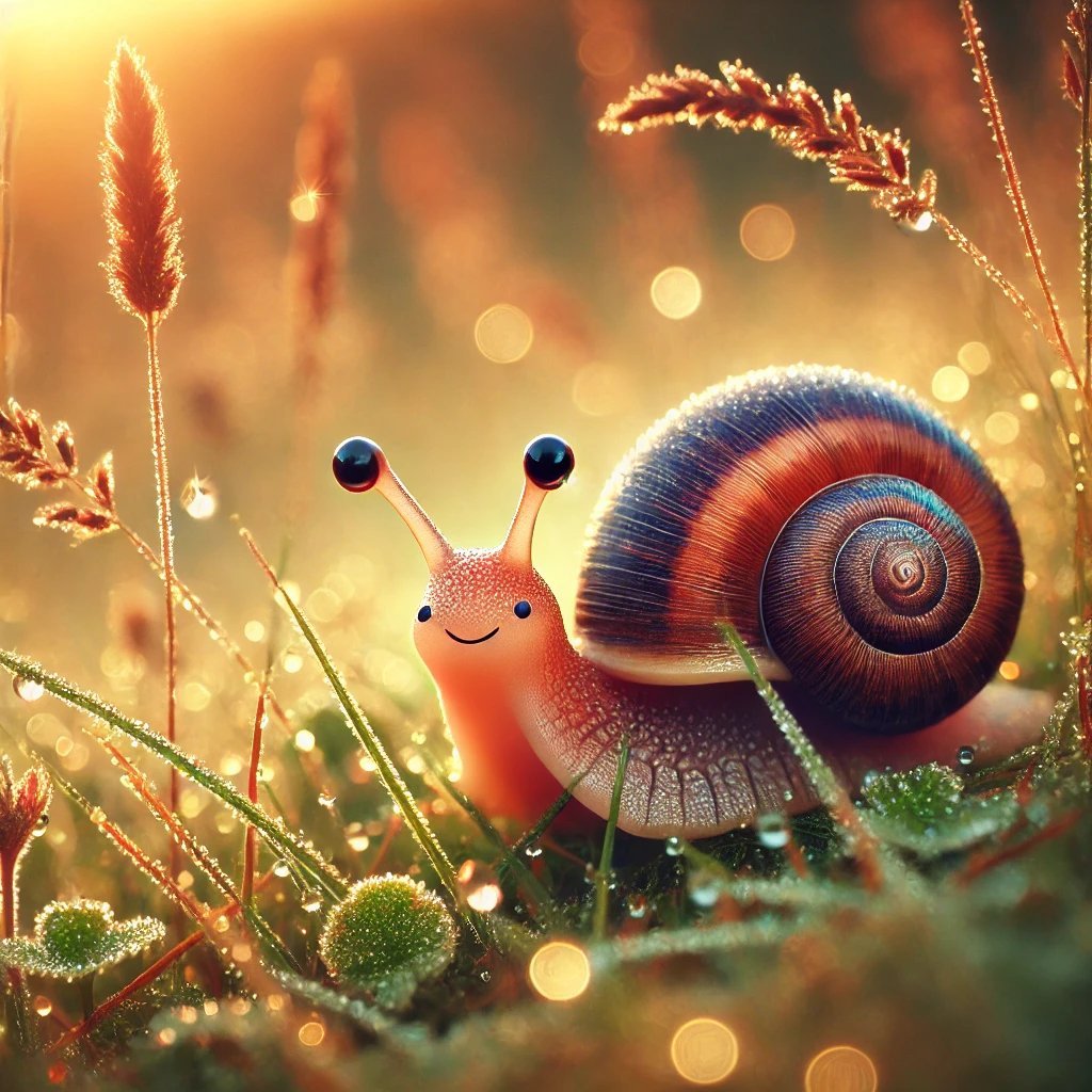 A rét szélén, ahol a harmat gyöngyökként csillogott a fűszálakon, élt egy apró, sárgásbarna csiga, akit Pötyinek hívtak.