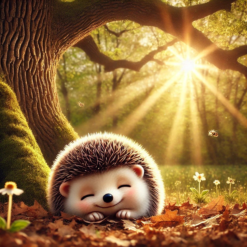 Egy puha avarral borított faodú mélyén ekkor mocorgás hallatszott. Egy pici, tüskés kis gömb mozdult meg óvatosan, majd egy álmos szempár kukucskált ki az odú nyílásán.