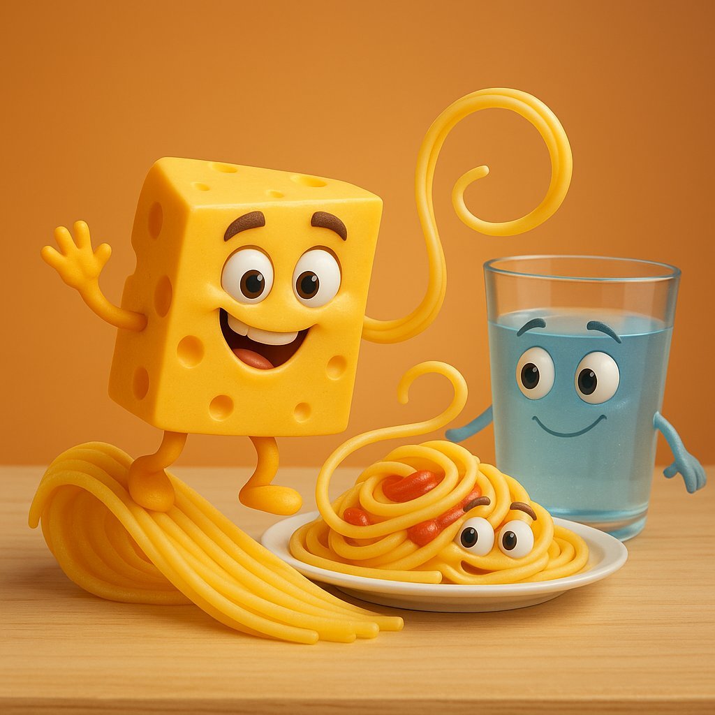 – Én vagyok a legfontosabb! – puffogott Sajti. – Nélkülem a tészta unalmas!