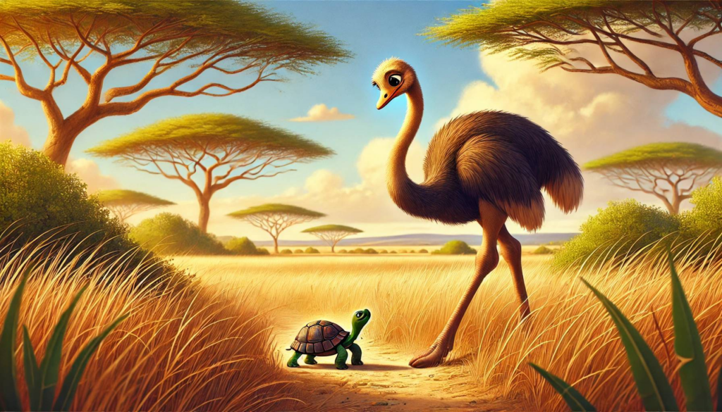 Egyszer volt, hol nem volt, élt egyszer egy fiatal és kíváncsi strucc, akit Szaminak hívtak. Szami a szavannán lakott a családjával, ahol a végtelen, aranyló fűszálak között szabadon futhatott, és az állatok élete mindennap tartogatott valami izgalmasat. Szami mindig is különlegesnek érezte magát, hiszen ő volt a leggyorsabb futó az egész szavannán.