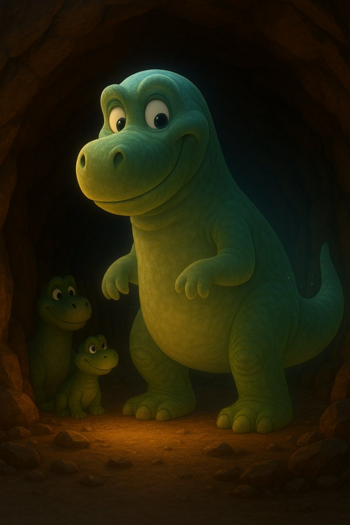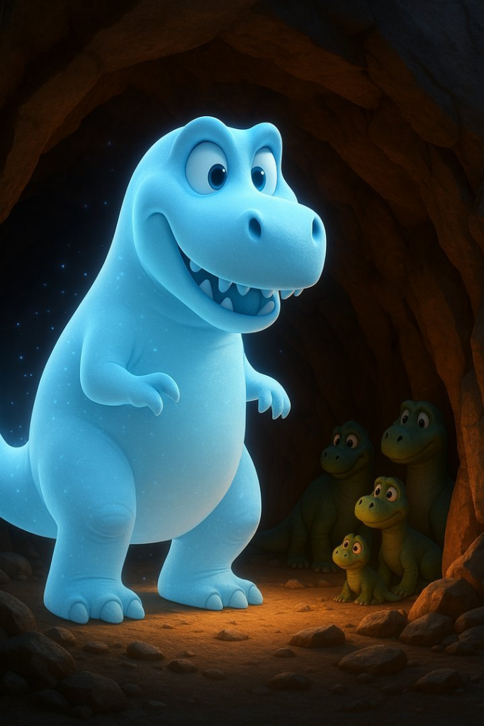 Messze, a hegyek között, egy mély és ködös barlangban élt egy különleges dinoszauruszcsalád. Ők voltak a Szellemszauruszok – hatalmasak, tejfehérek, kicsit átlátszók, és olyan puhán mozogtak, hogy még egy kő sem rezdült meg alattuk.