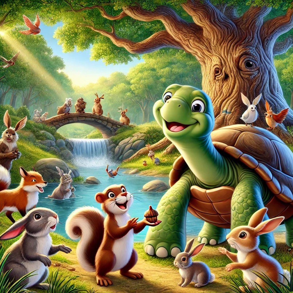 Egyszer volt, hol nem volt, egy gyönyörű, csendes erdő közepén csordogált egy kristálytiszta patak. Ebben a patakban élt egy bölcs és kedves teknős, akit Teklának hívtak. Tekla lassú, megfontolt életet élt, és mindent szeretett megfigyelni maga körül: a patak hullámzását, a falevelek táncát a szélben, és a madarak vidám énekét.