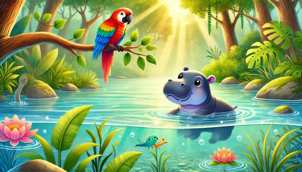Egyszer volt, hol nem volt, élt egy kedves és kíváncsi víziló, akit Vincének hívtak. Vince egy csendes, zöldellő tóban lakott, amely tele volt tiszta vízzel, vízi növényekkel és rengeteg állat barátjával. Vince különleges víziló volt, mert imádott tanulni azokról az állatokról, akik a tó körül éltek.